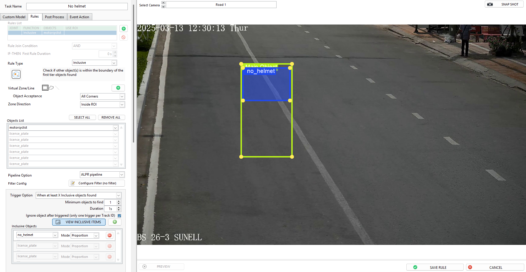 A rule is a set of conditions that defines and triggers an event of the AI Task. To create a rule: