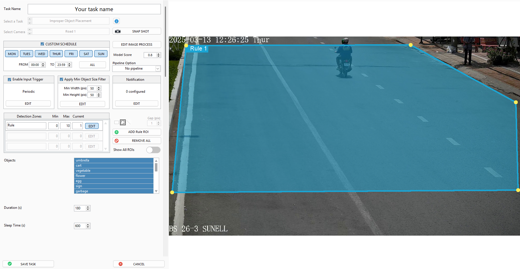 8. Detection Zones: You can define a detection zone (Region of Interest/ ROI) to monitor objects within specific areas or directions rather than monitoring the whole image. Each AI task may have different type of zones provided, and some AI task will require you to add zone