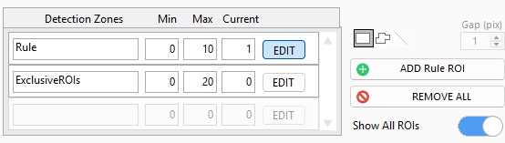3. Select a shape (Rectangle, Polygon, or Line) and press Add Rule ROI to add the shape overlay to the image